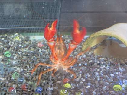 アメリカザリガニとめだかとカブトエビです。