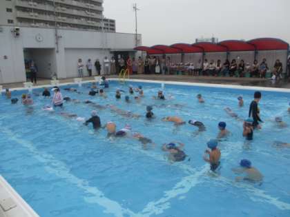 多くの保護者のみなさまに水泳の授業の様子を参観していただきました。ありがとうございました。