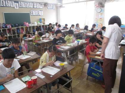 本日、2名の歯科衛生士に来校いただき、4年生が歯みがき教室を実施しました。