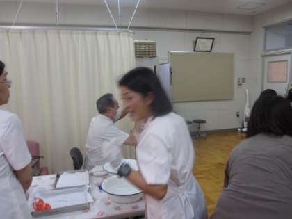 歯磨き教室の後には、歯科校医先生にお越しいただき、フッ化物塗布をしました。