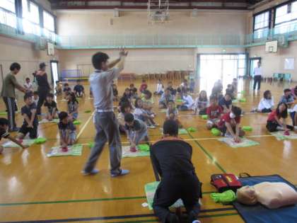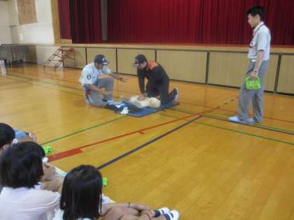 6年生は2限に住之江消防署の方にお越しいただき、救急救命講習を行いました。いざというときに、目の前の人の命を助ける行動がとれるのが自分しかいなければ、何をしなければならないか。しっかり学んだ1時間でした。