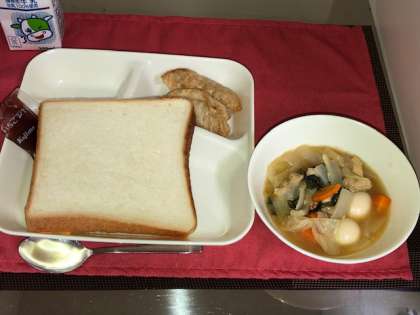 食パンにはいちごジャムがつきました。中華煮は個別対応献立(うずら卵)でした。