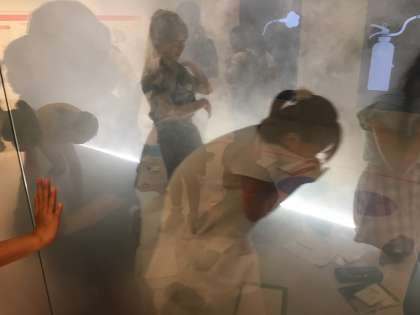展示資料や疑似体験で防災・減災の意識を高めました。