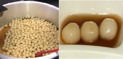 きょうの献立は、お月見の行事献立でした。みたらしだんごは1人3個でした。