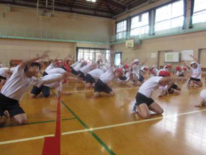 体育館で5年生の演技の練習をしました。ソーランを取り入れた演技は、こどもたちの頑張りで間もなく完成だそうです。あとは細部の詰めに時間をしっかりとって、本番には最高の状態で披露したいと思います。