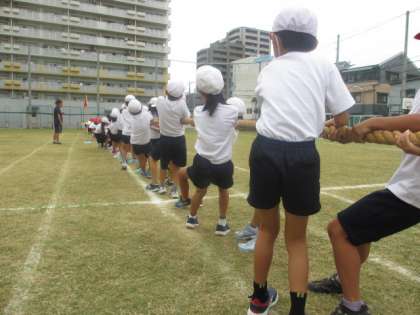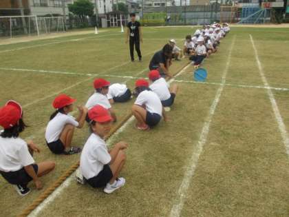 運動会の演技の練習に加え、競技の練習にも熱が入ってきています。今日は3年生が、綱引きの練習をしていました。本番さながらの力強さで、勝負が行われ、今日は白組が勝ちました。赤組には本番での巻き返しを期待しています。