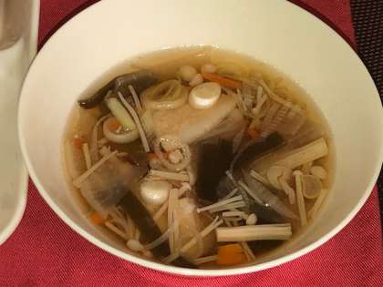 ソーキ汁は沖縄の郷土料理で豚バラ肉・切りこんぶがはいっています。