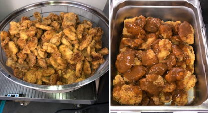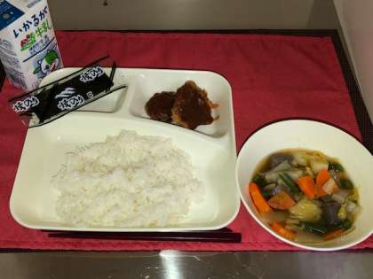 みそカツは給食室での手作りで卵アレルギーの児童も食べられるように卵は使用していません。みそダレは八丁みそ・赤みそ・砂糖・みりん・水を合わせ煮でんぷんでとろみをつけています。1人2切れずつでした。児童にも大好評の1品です。
