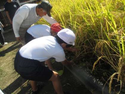 春に植えた清江田の稲が実り、本日収穫しました。はぐくみネットワークのみなさまありがとうございました。きっとこどもたちはおいしくいただけると思います。