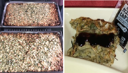 お好み焼きには1人1袋トンカツソースがつきました。大阪名物お好み焼きは児童にも大好評でした。
