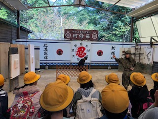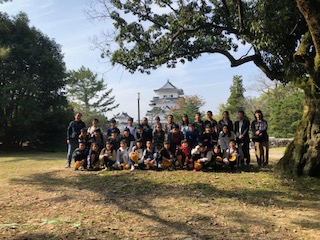 忍者ショーを見たにち、伊賀上野城を背景に集合写真を撮りました。