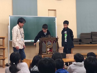 代表の子どもたちがオルガネッタの演奏体験に臨みました。