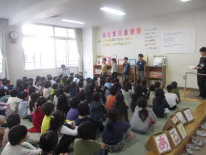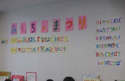 6年生は修学旅行中の学校では、2年生が1年生にたのしんでもらうために、おもちゃのお店屋さんを準備して「おもちゃまつり」が行われました。