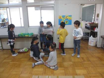 1年生に丁寧にゲームの内容を説明している2年生をみると、1年間の成長を感じました。1年生も楽しく遊んでいました。