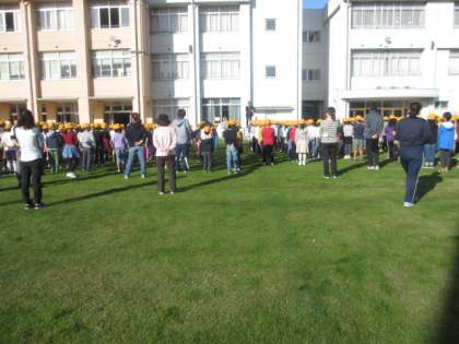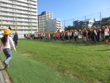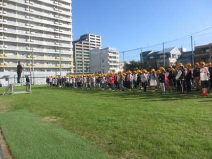 オーバーシードによる芝生の養生期間が終え、本日より運動場が使用可能になり、全校朝会を行いました。休み時間にはこどもたちは元気にうれしそうに芝生で遊んでいました。