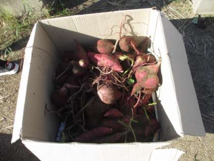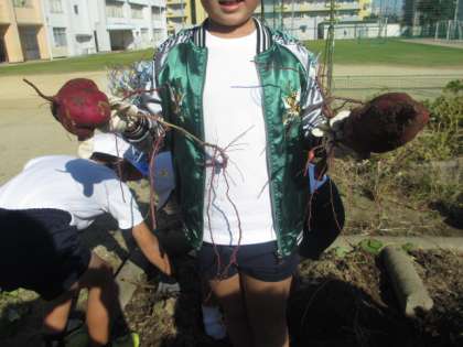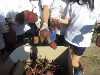 どんどん大きなサツマイモが収穫できました。箱いっぱいになり、例年にない大豊作でした。