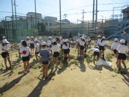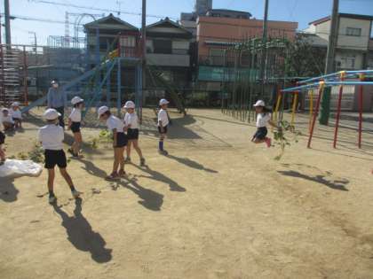 芋ほりが終わった後、長いつるを利用して縄跳びを楽しみました。
