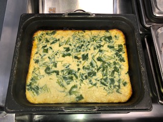 きょうの千草焼きは卵にささみ・とうふ・コーン・みつばを加えて焼き上げています。