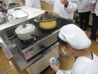 昨日に続き、今日は5年2組の家庭科に時間に、清江田で収穫したお米を炊き、お味噌汁を作りました。昨日の1組に続き、とっても手際のよい???調理を見ることができました。