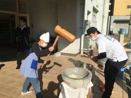 杵を使って餅をつくのが初めての子どもいましたが、ついているうちに慣れだして、テンポよく???もちが出来あがっていきました。