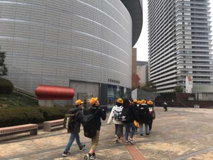朝日新聞大阪本社の見学が終了し、徒歩で大阪市立科学館に到着しました。次は理科の勉強です。