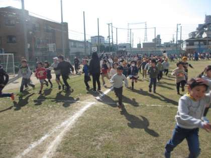 走る前には準備運動を。
