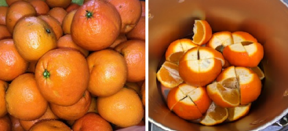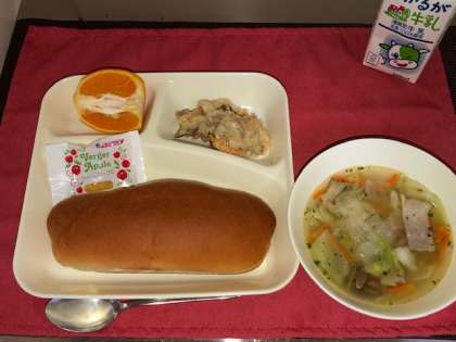コッペパンにはリンゴジャムがつきました。いよかんは1人1/4切でした。