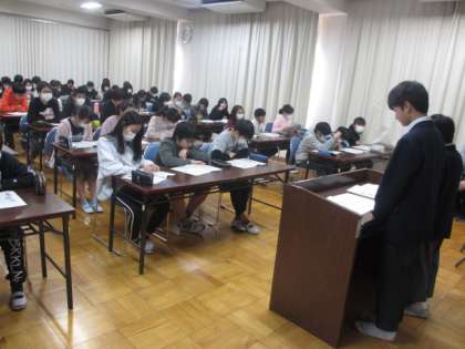本日5時限目、真住中学校から生徒会執行部の2名が清江小学校に、中学校の紹介をしてくれました。まもなく中学生となる6年生に向けて、中学校での生活の不安を少しでも解消しようと、冊子を用いて説明してくれました。