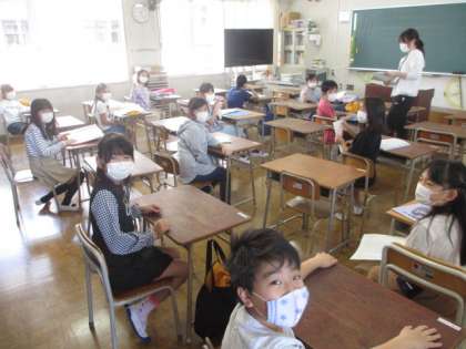 4年生を中心にいろいろな学年、学級に行かせてもらいます。清江小学校のみんなの素敵な笑顔にいっぱい会えることを、とてもうれしく思っています。