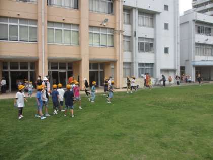 本日、住之江消防署の方々にお越しいただき、本年度初めての避難訓練を実施しました。本日より学校公開も重なり、多くの保護者のみなさまにも様子を見ていただきました。