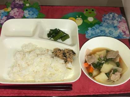 ツナっ葉いためはだいこん葉(乾)を使用しツナといため料理酒・こい口しょうゆ・うす口しょうゆで味付けしています。児童にも大好評でごはんもすすむ1品です。