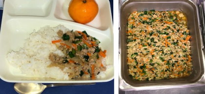 きょうは学校給食献立コンクールの最優秀賞のメニューです。中学生が考えたメニューで大好評でした。