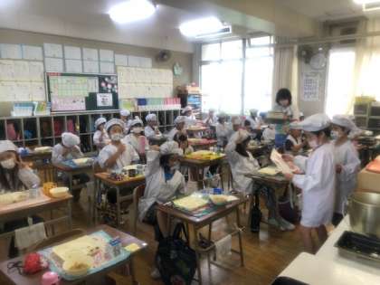 下の2枚の画像は3年1組の給食時間の様子です。