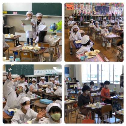 紅ざけそぼろはさけフレークと青のり・ごまをいため料理酒・みりん・しょうゆで味付けした給食室での手作りのふりかけです。ごはんも完食になる大好評の1品です。