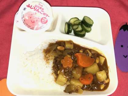 きょうのカレーにはいろんな形のラッキーにんじんがはいっていました。