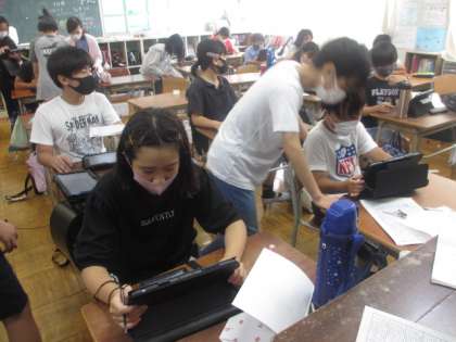 本日6年生でオンライン授業の実施に向けた、タブレット端末を使用した教室でのオンライン通信のテストを行いました。