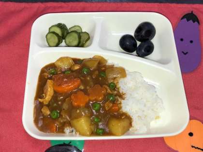 9月・10月は食物アレルギーサポート月間の為、小麦アレルギーの児童も食べれるように米粉のカレールゥを使っています。