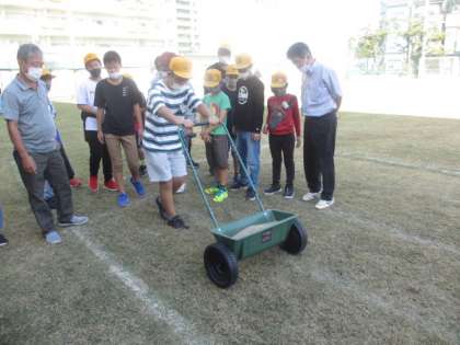 オーバーシードの様子です。