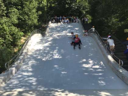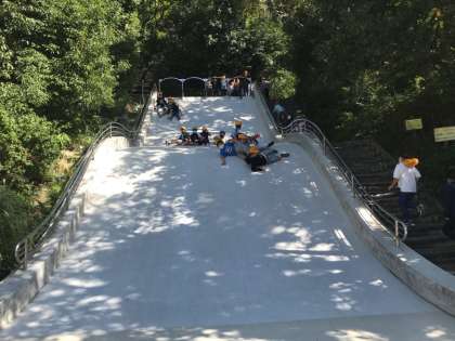 公園内の遊具で休憩時間を過ごしています。