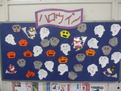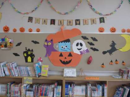 校内では図書ボランティアのみなさまの図書館内の装飾など、ハロウィン模様となっています。