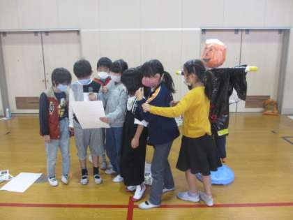 4年生は本日、はぐくみネットワークのご協力で、かかし作りをしました。