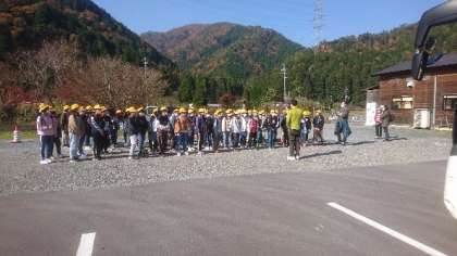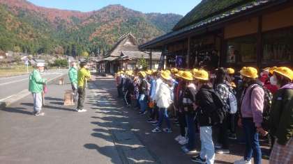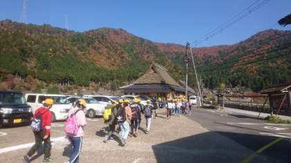 5年生はかやぶきの里に到着しました。