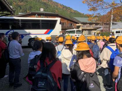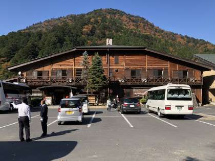 正面にある建物が、本日の宿舎となる河鹿荘です。