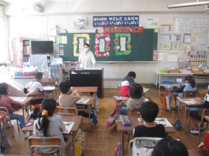 本日、1年生は住之江小学校より栄養士先生にお越しいただき栄養教室をしました。