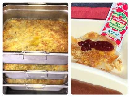 ツナポテトオムレツには1人1袋のケチャップがつきました。