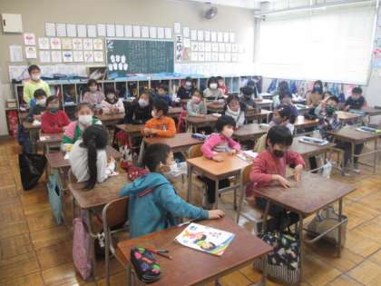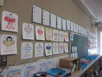 2年生の教室には、凧が掲示されています。各々が今年のねらいをしっかりと書き込み、いつでも確認しながら、日々いろいろなことに取り組んでいます。