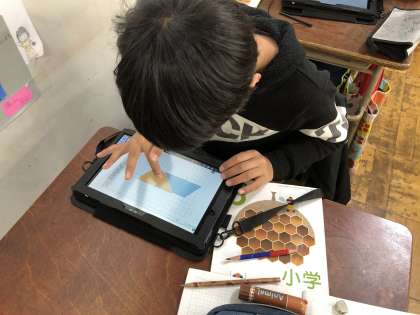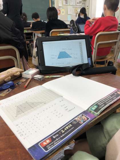 本日は5年生の算数の授業で、一人一台ずつタブレット端末を活用して、授業研究を行いました。与えられた課題に、楽しそうに取り組んでいました。