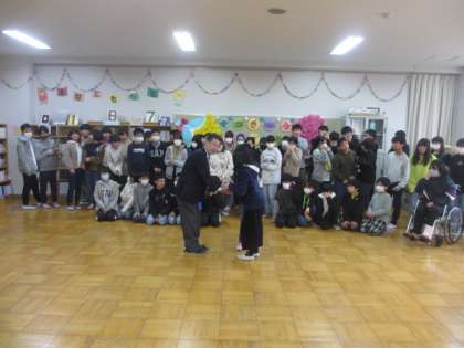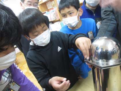 代表がねじをしっかりと止めて、校長先生に託しました。