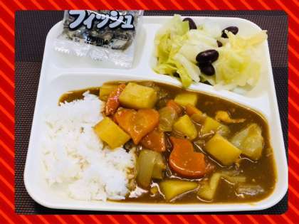 きょうのチキンカレーライスにはラッキーにんじんがはいっていました。