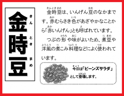 ビーンズサラダはキャベツと金時豆を使用したサラダです。